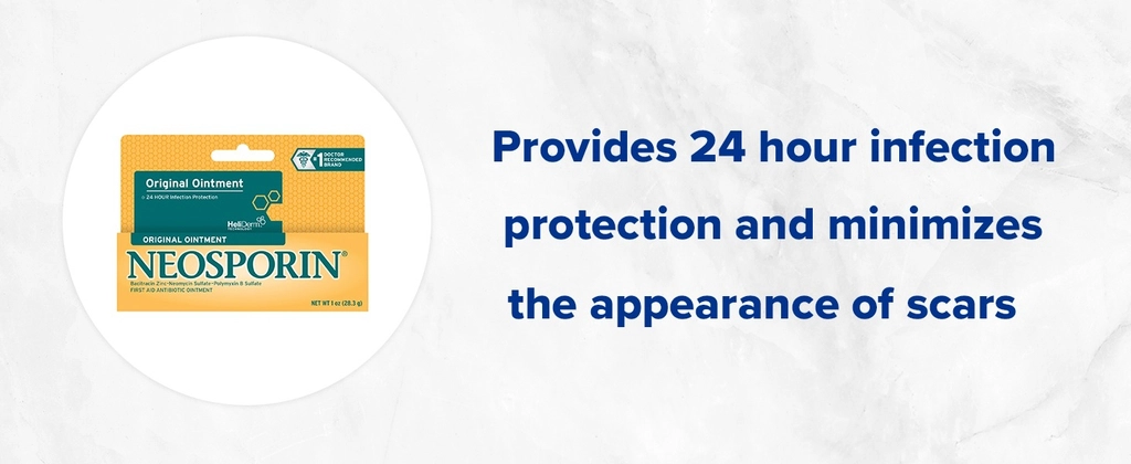Neosporin Original First Aid Antibiotic Ointment -Thuốc mỡ kháng sinh sơ cứu ban đầu Neosporin cung cấp khả năng bảo vệ chống nhiễm trùng lâu dài và giảm thiểu sự xuất hiện của sẹo. Được làm bằng kẽm bacitracin, thuốc mỡ kháng sinh sơ cứu này giúp ngăn ngừa nhiễm trùng ở các vết cắt nhỏ, vết xước và vết bỏng và giúp giảm thiểu sự xuất hiện của sẹo. Từ thương hiệu số 1 được bác sĩ khuyên dùng, loại thuốc mỡ kháng sinh chăm sóc vết thương này chứa Công nghệ HeliDerm độc đáo cung cấp môi trường nuôi dưỡng để da lành lại. Để điều trị các vết thương nhỏ, chỉ cần thoa một lượng nhỏ thuốc mỡ kháng sinh bảo vệ chống nhiễm trùng 24 giờ và thuốc giảm thiểu sẹo lên vùng bị ảnh hưởng từ một đến ba lần mỗi ngày và tận hưởng vết thương lành với vết sẹo ít nhìn thấy hơn.