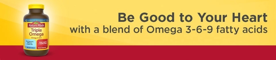 Hãy tin tưởng sức khỏe trái tim của bạn với Nature Made Triple Omega, một công thức pha trộn giữa cá, hạt lanh, cây rum và dầu ô liu cung cấp ba loại axit béo chính mà cơ thể sử dụng (Omegas 3-6-9).