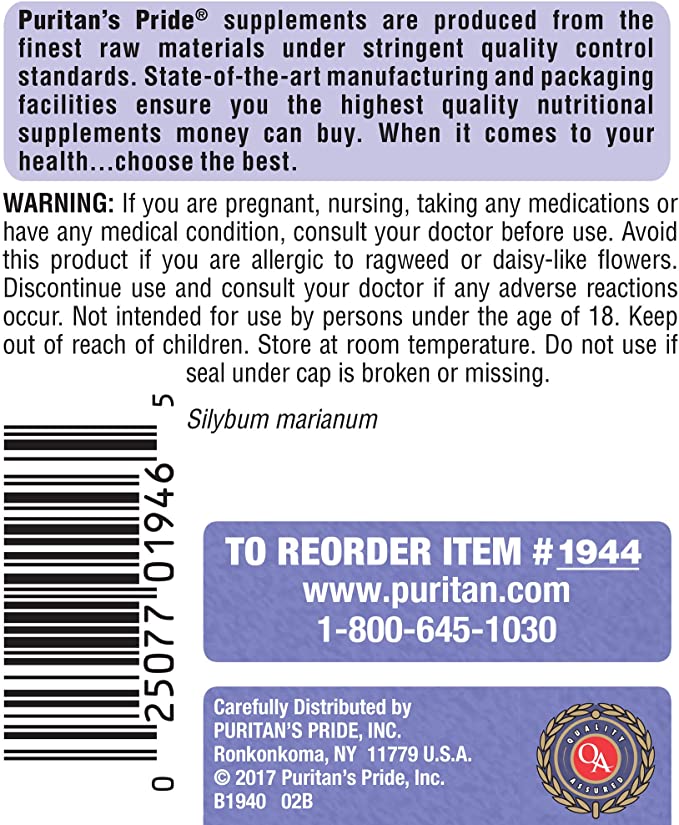 Tên sản phẩm: Puritan's Pride Milk Thistle 4:1 Extract 1000 mg