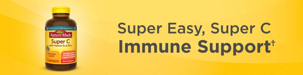 Nature Made Super C with Vitamin D3 & Zinc cung cấp một loạt các chất dinh dưỡng hỗ trợ miễn dịch chỉ trong một viên thuốc hàng ngày.