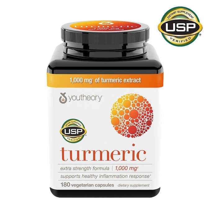Viên uống tinh chất nghệ youtheory Turmeric Extra Strength Formula hỗ trợ phản ứng viêm lành mạnh với chiết xuất nghệ được nghiên cứu lâm sàng nhất.