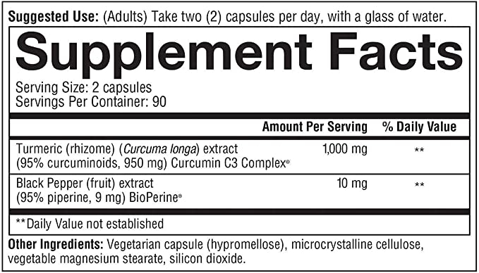 Nó cũng được tăng cường BioPerine, một chiết xuất hạt tiêu đen đã được cấp bằng sáng chế giúp tăng cường sự hấp thụ, rất quan trọng để có được những lợi ích của curcumin và curcuminoids.